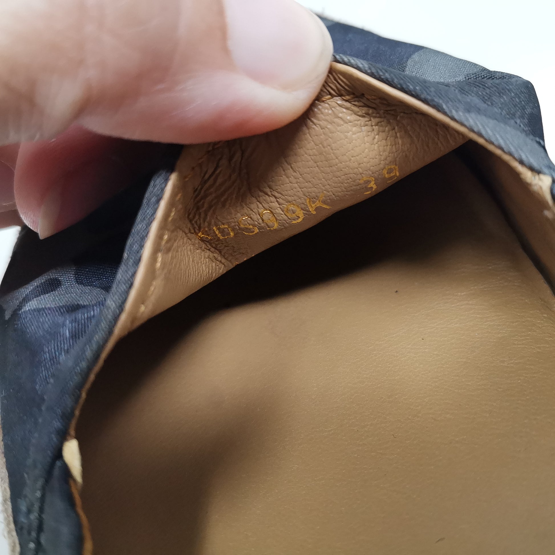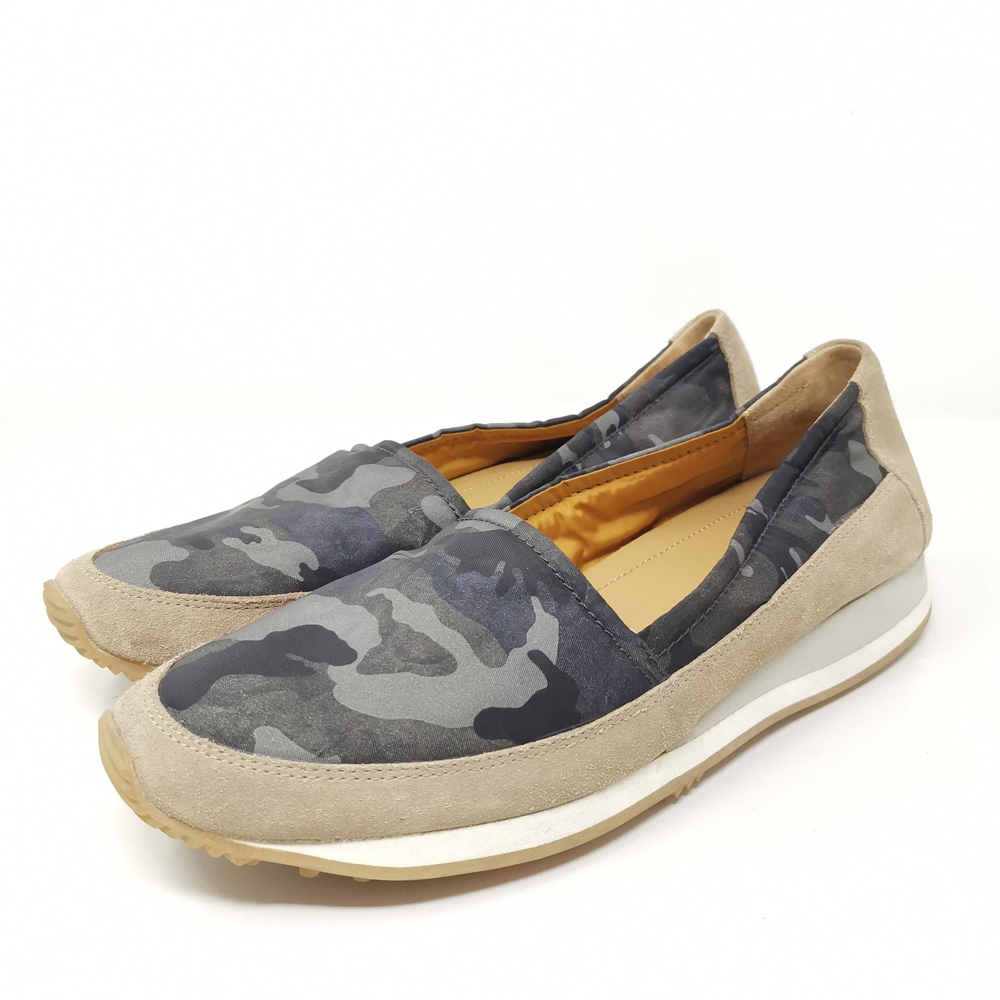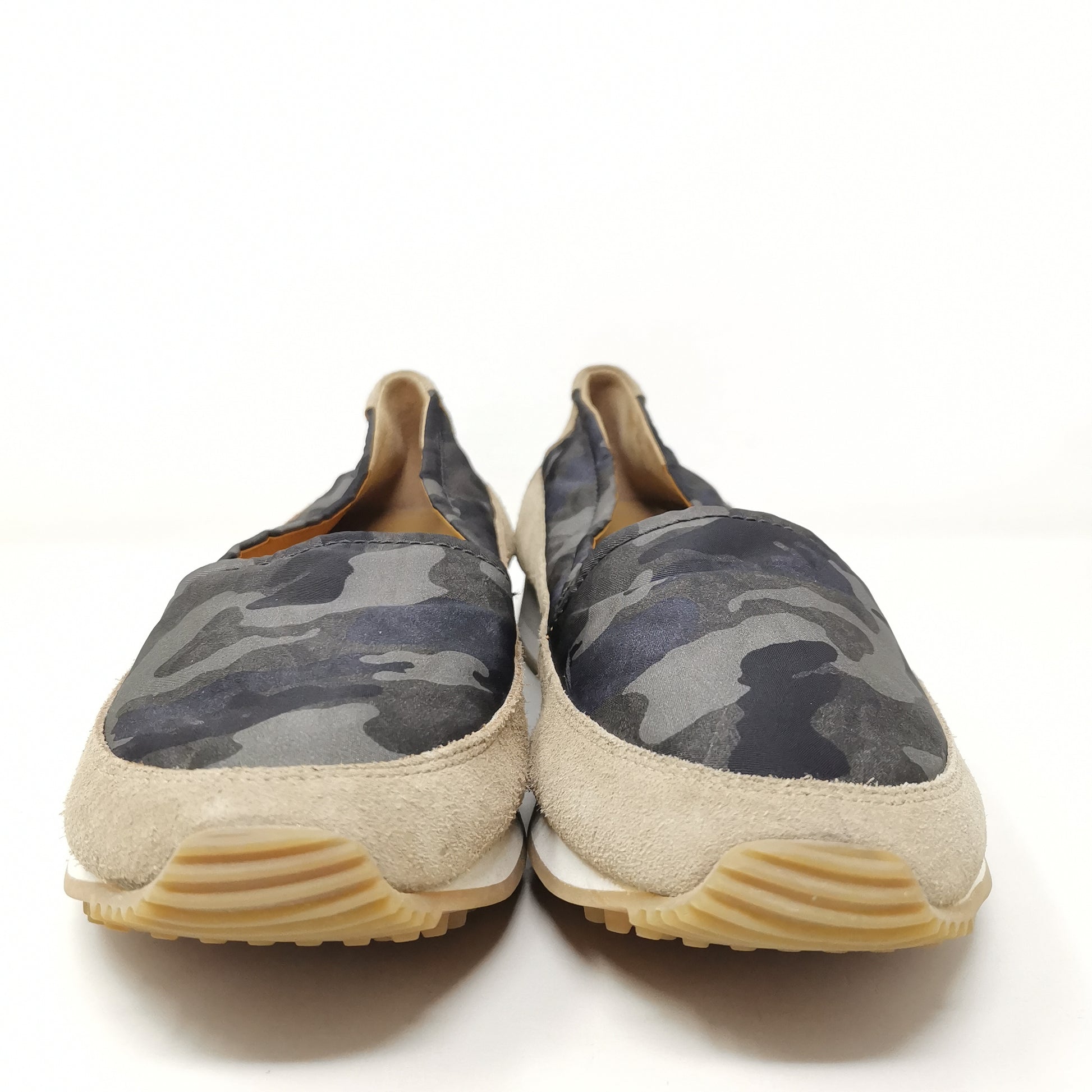 Car Shoe flats in beige suede and camouflage fabric. Leather insole and 2.3 cm high rubber sole, rubber outsole. Inner sides in fabric, very comfortable. Some small, barely visible halos. The insole measures 25.5 cm. Size 39 EU.