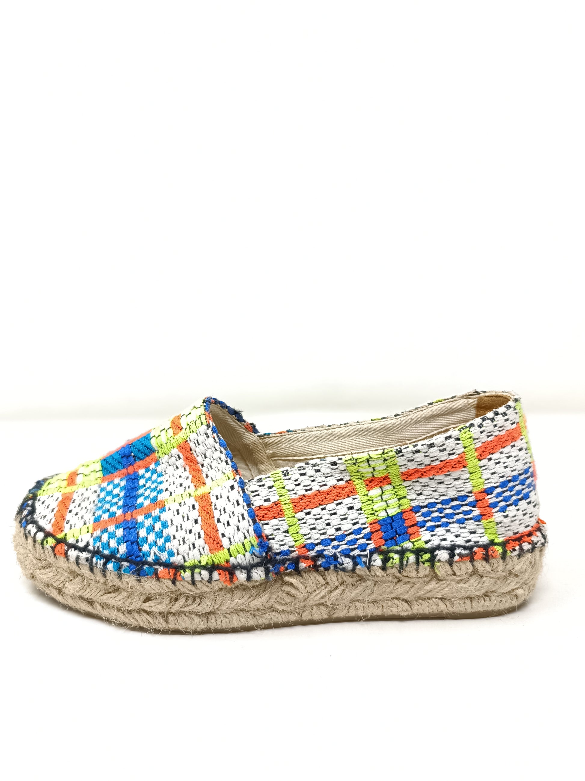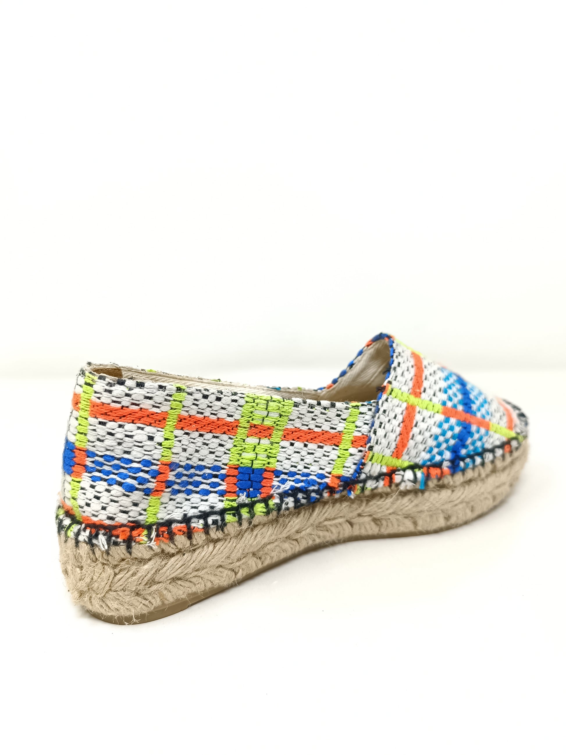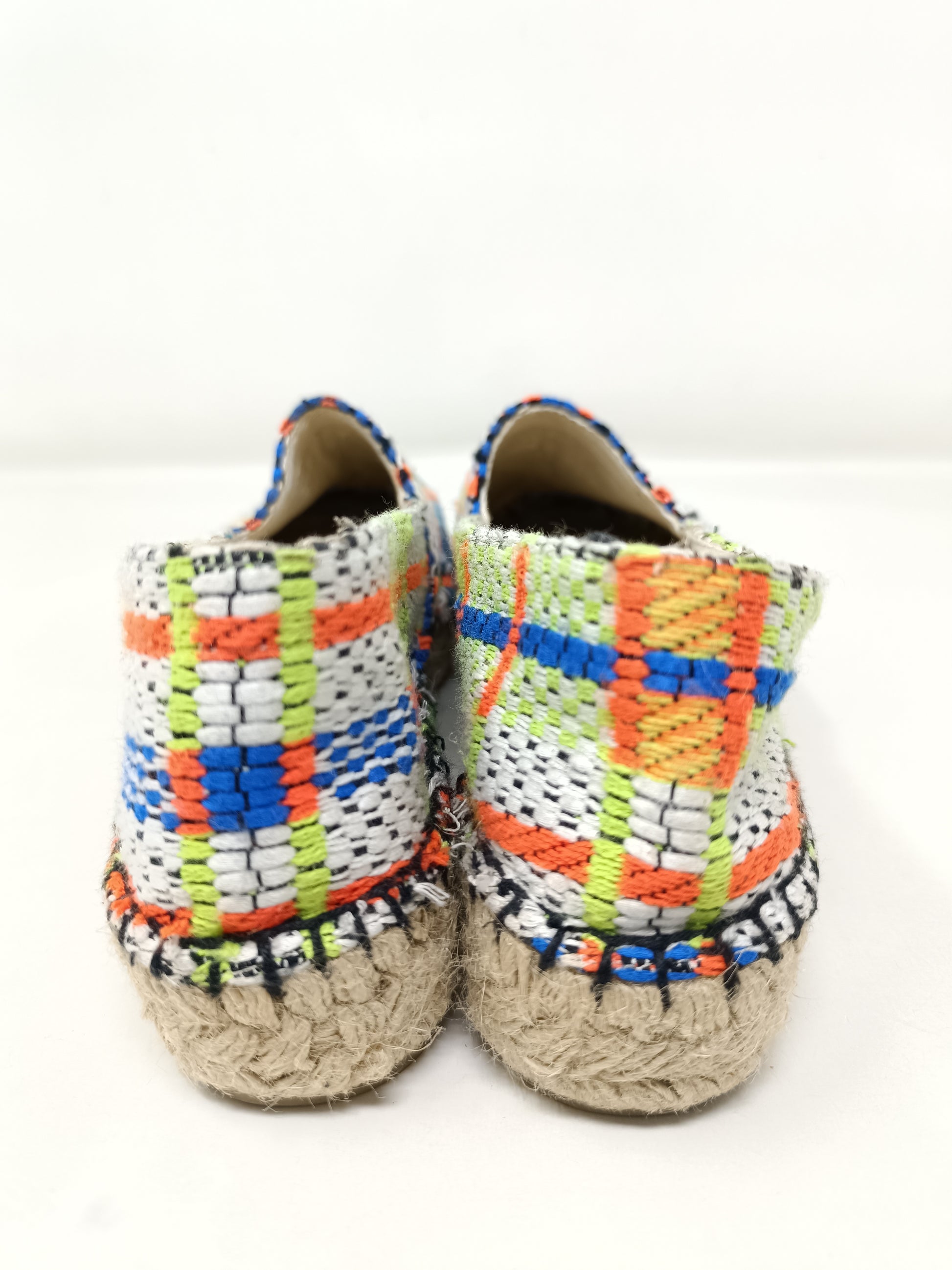 Castaner espadrilles made in Spain, multicolored. Rope sole 3 cm high, the inner sole measures 23 cm. Rubber outer sole, fabric interior with some small tints due to the colour, excellent condition.