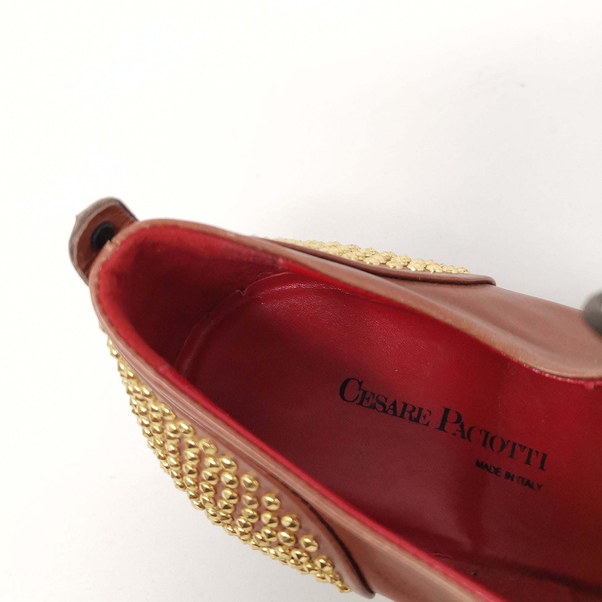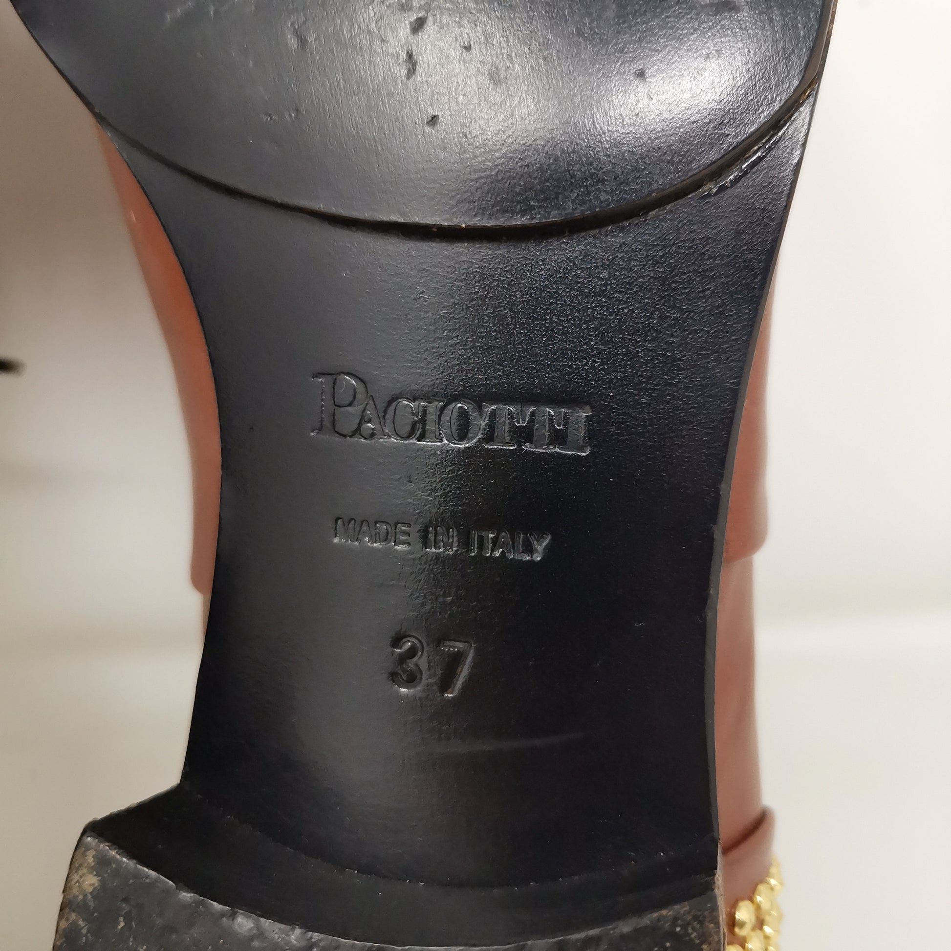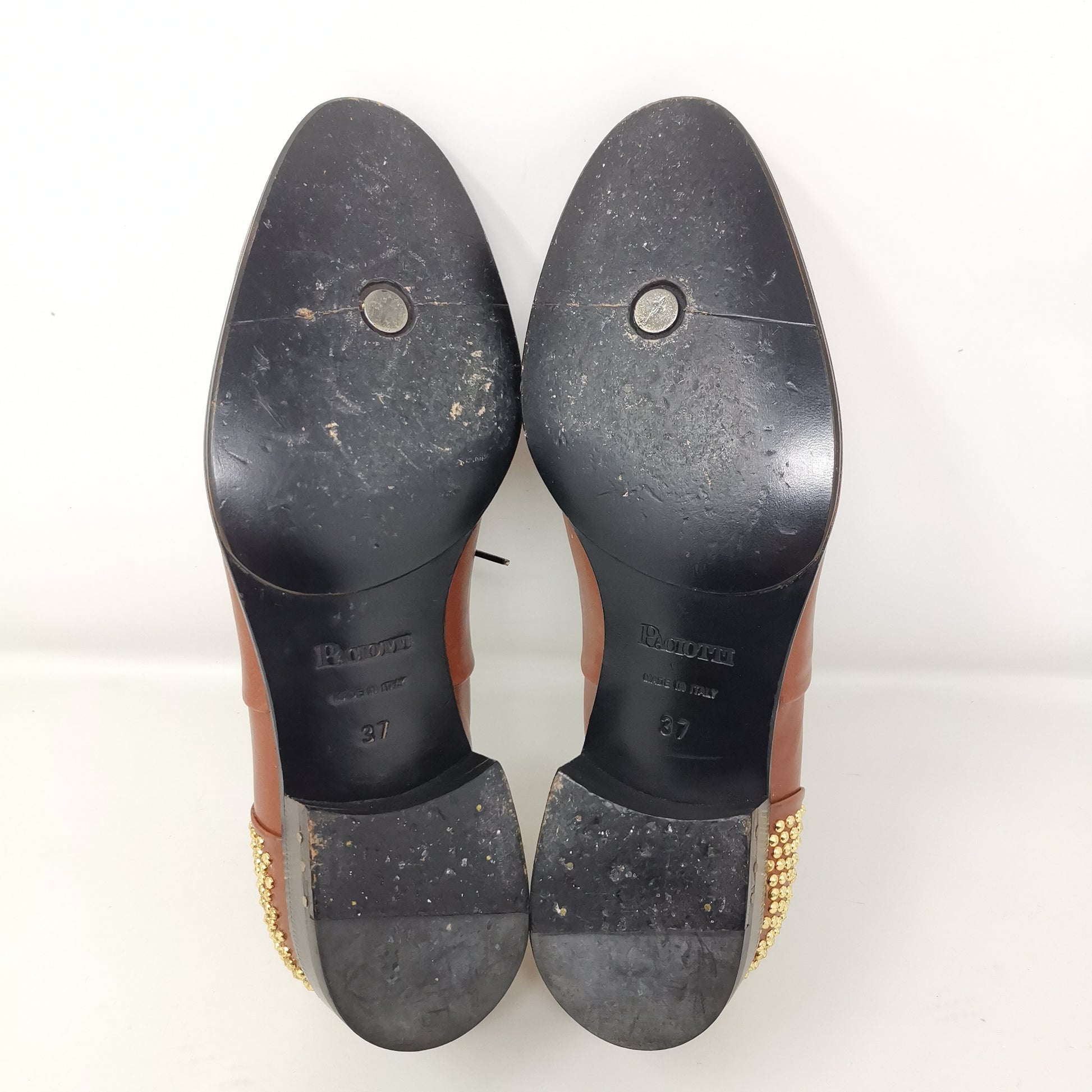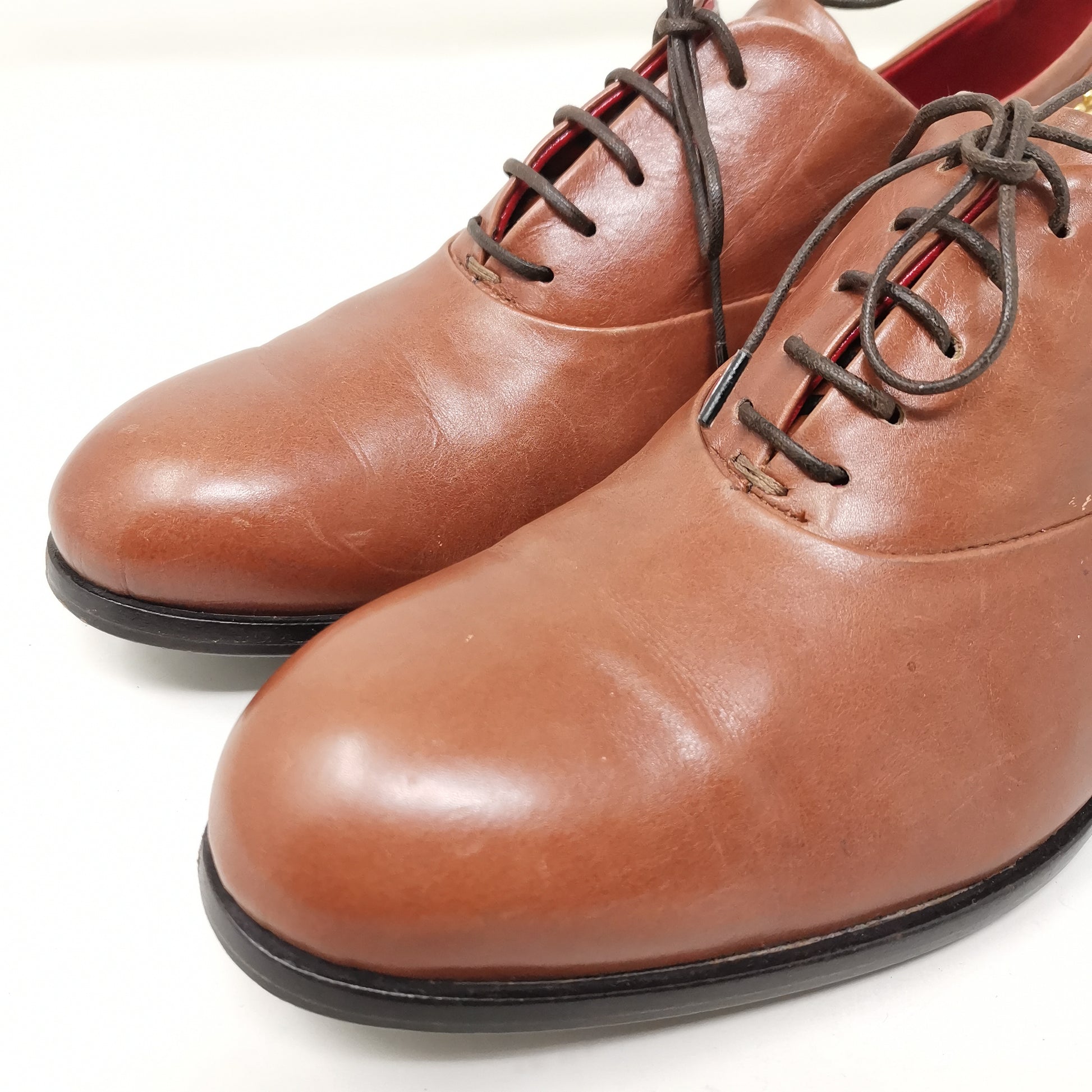 Light brown leather lace-up shoes with 2 cm high heel, leather insole and leather outsole, small gold studs on the heel area. A few small marks on the soles and toes, very soft leather, the inside of the sole measures 24cm. Size 37 EU.