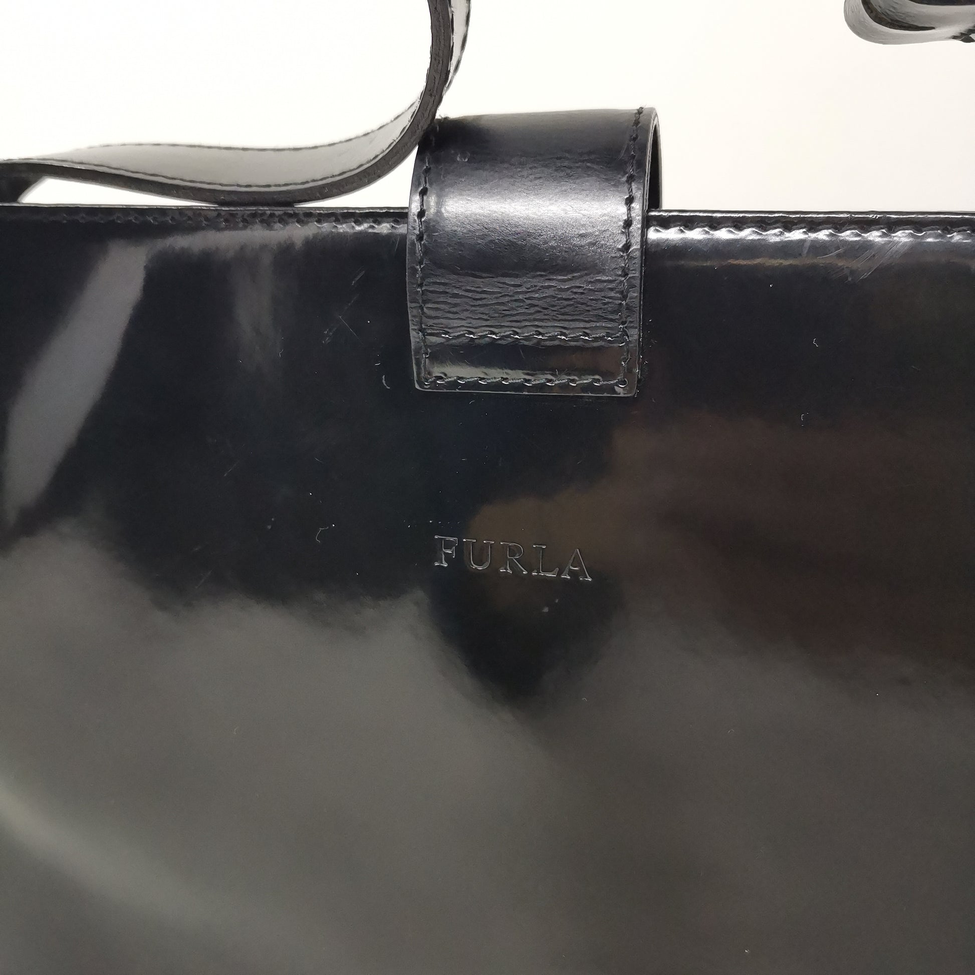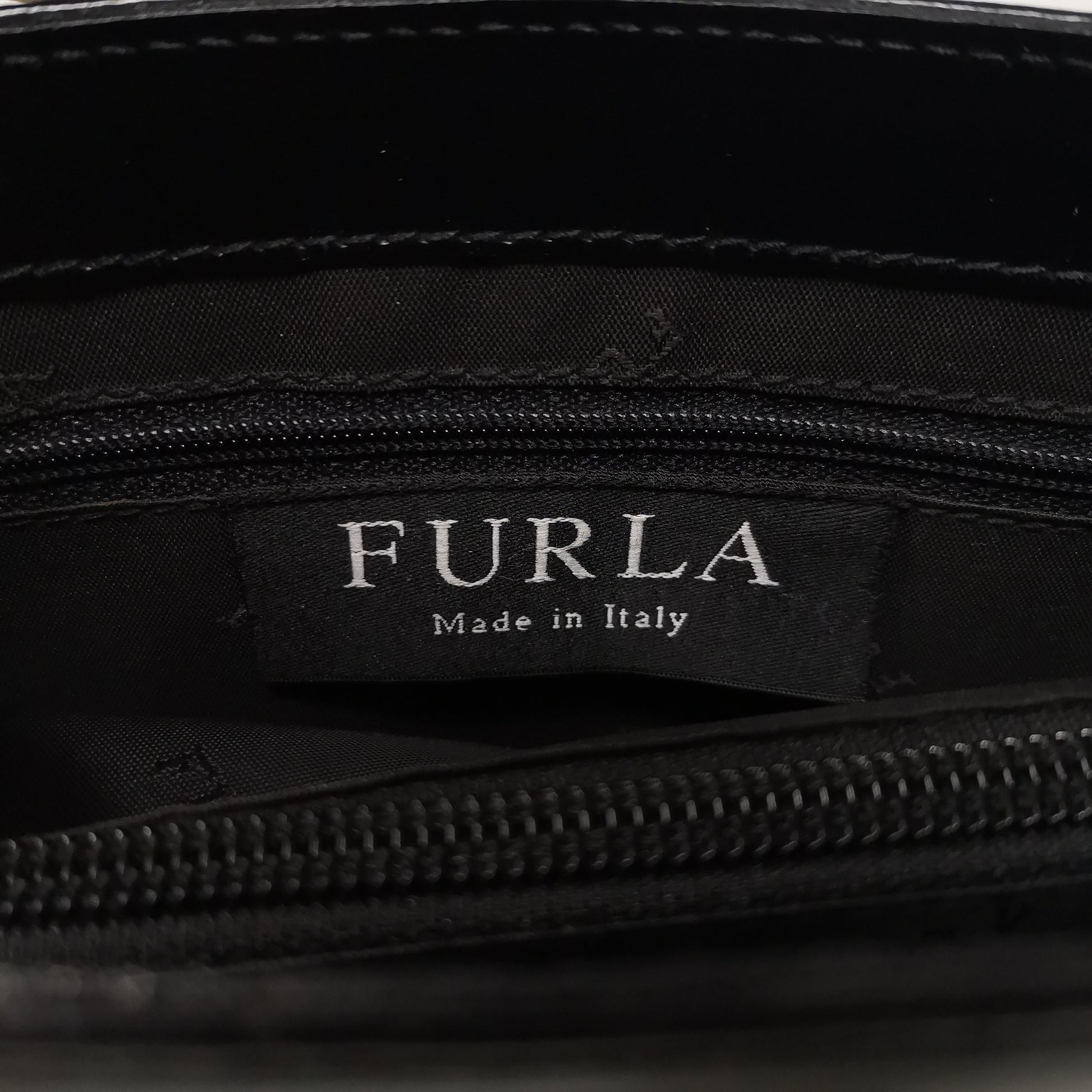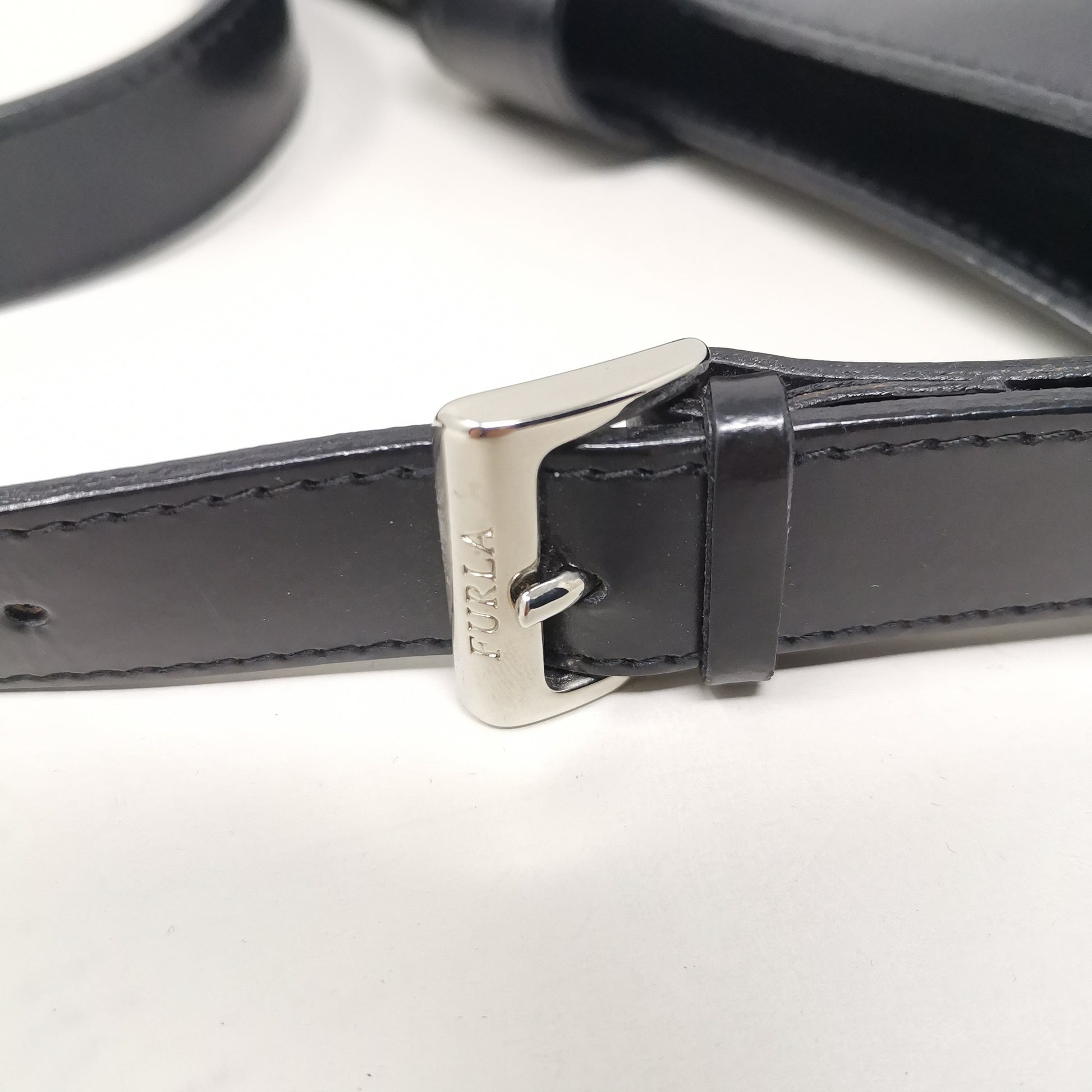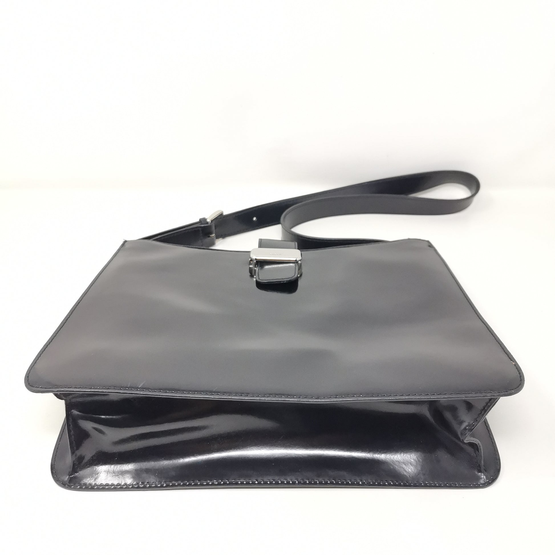 Black leather bag with single handle, fabric interior with maxi pocket that creates two compartments, closure with silver-colored metal plate. There are some marks on the leather part in general, adjustable handle. Width 29cm, height 22.5cm, depth 8cm, handle height 36cm.