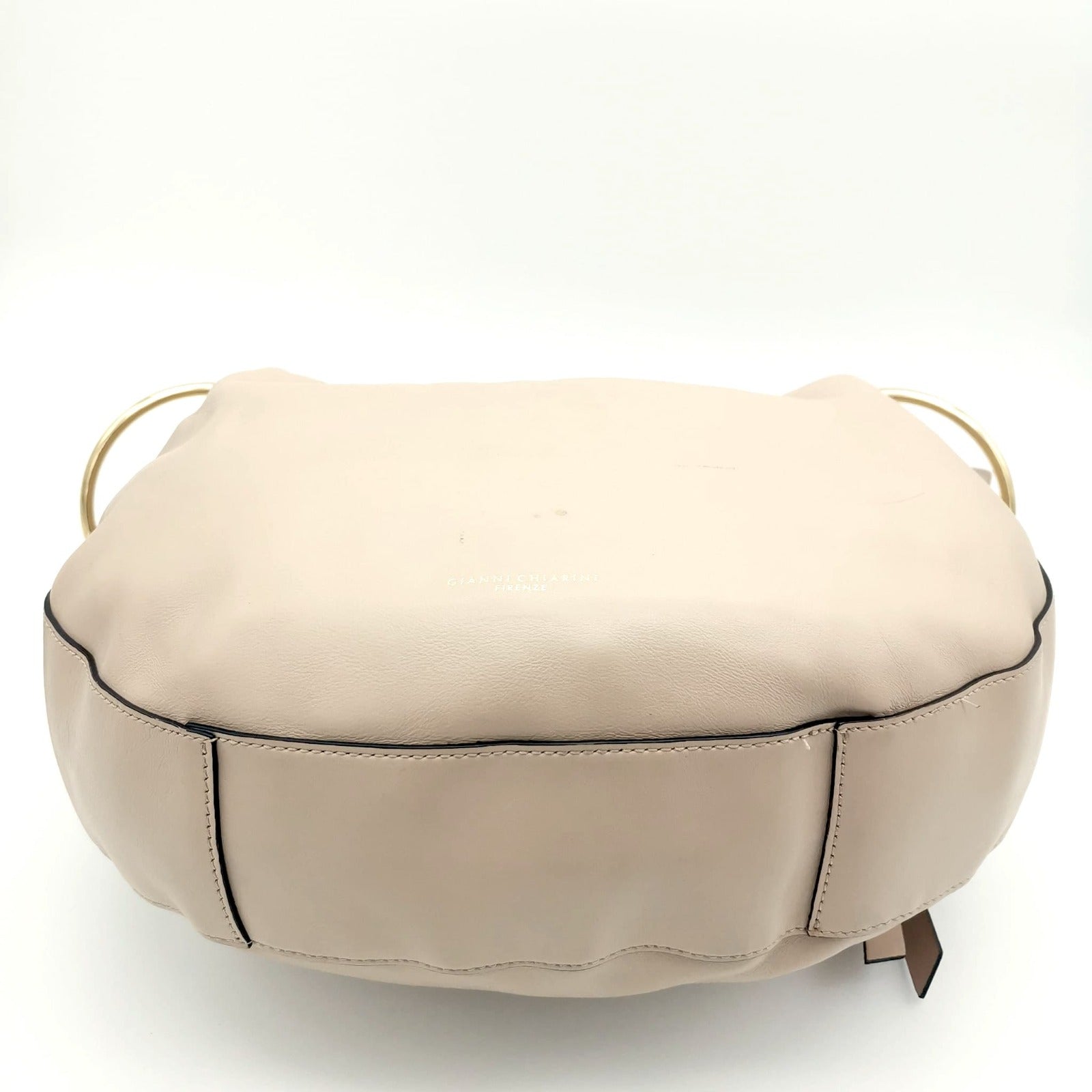Gianni Chiarini leather light pink/beige bag, adjustable strap, gold-colored metal hardware, zipper closure and lined fabric interior with pocket, small outside compartment on the back side.
