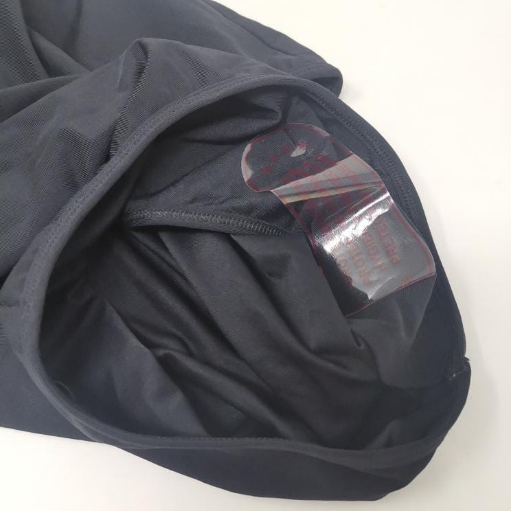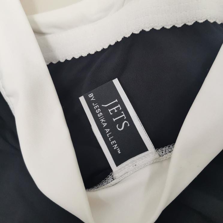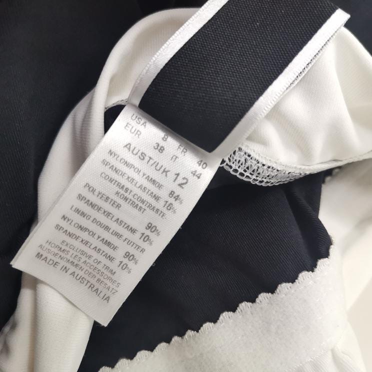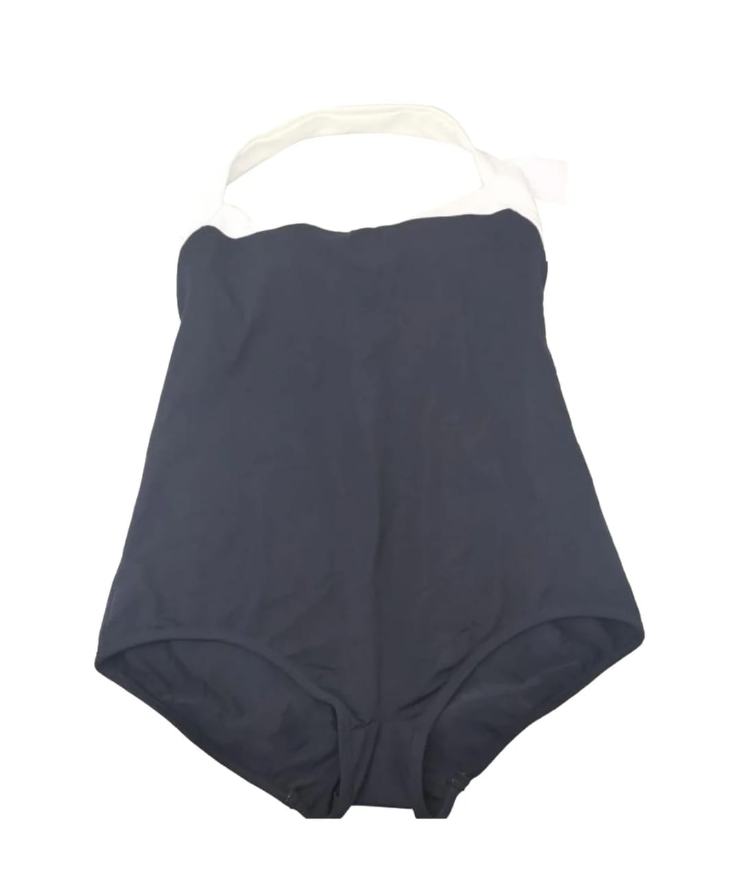 Vintage-style one piece swimsuit in black nylon and elastane with white piping. Soft cups inside. Never used. Size 12.