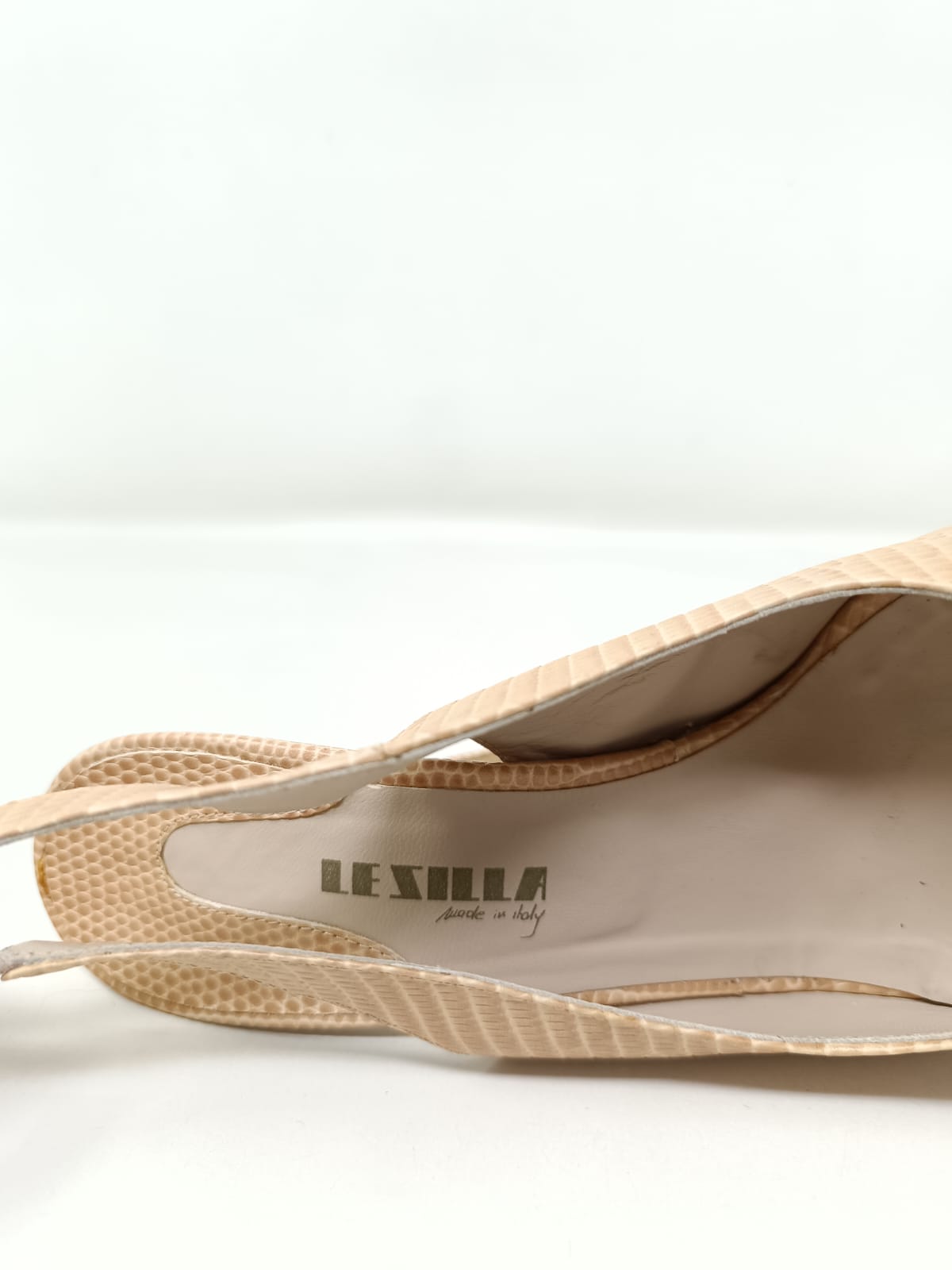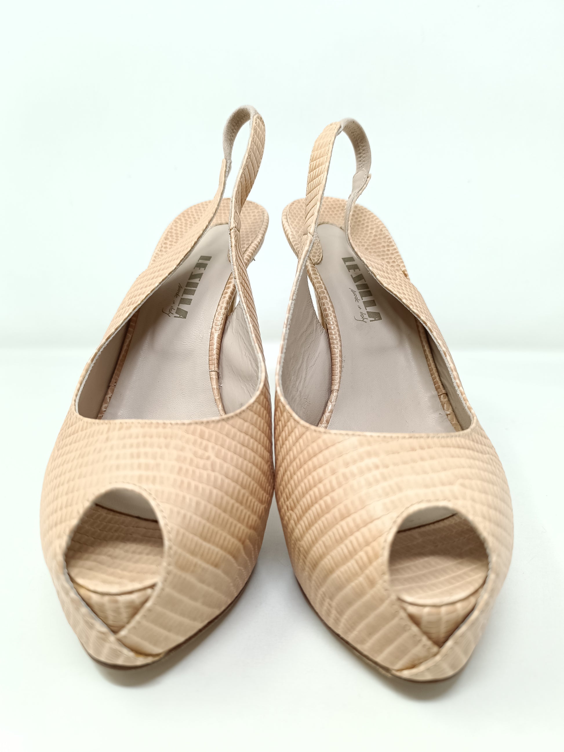 Open toe pink leather slingbacks with 13.5 cm high heel and 4 cm platform. Inner sole in leather and outer sole in leather. Size 41 EU, fit 40 EU. The insole measures 25.5 cm.