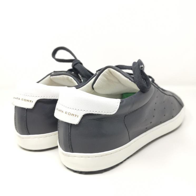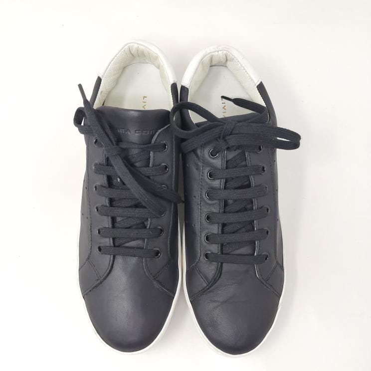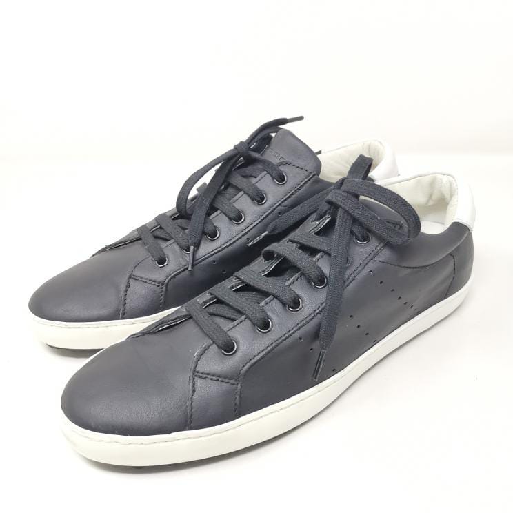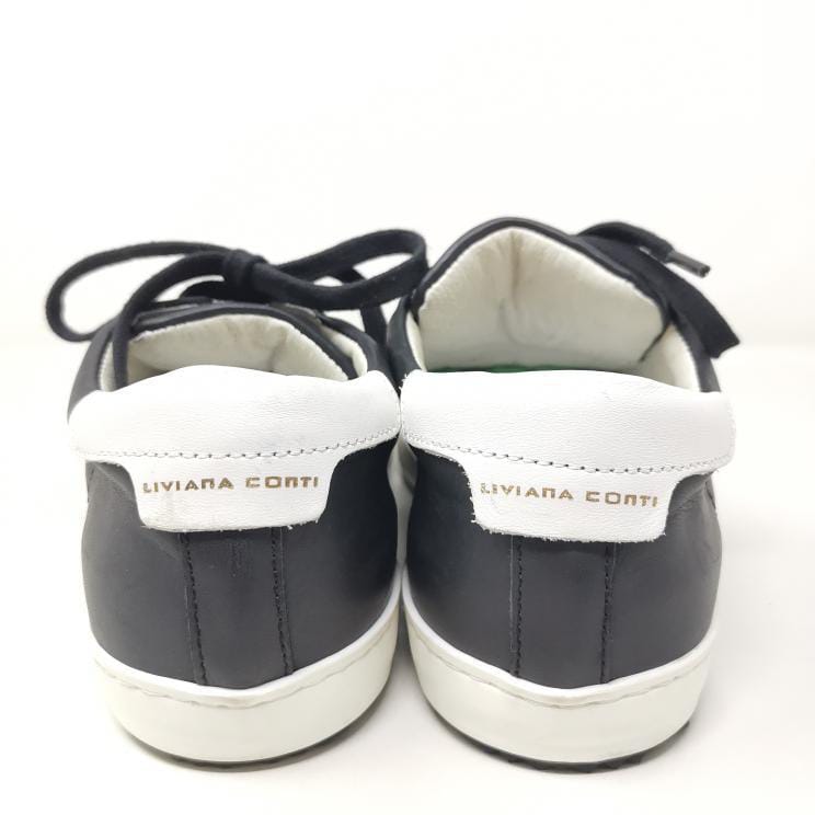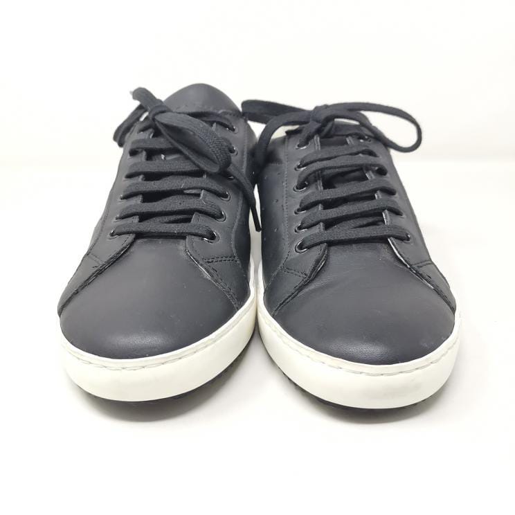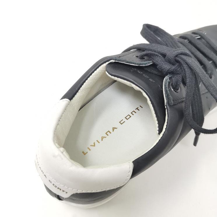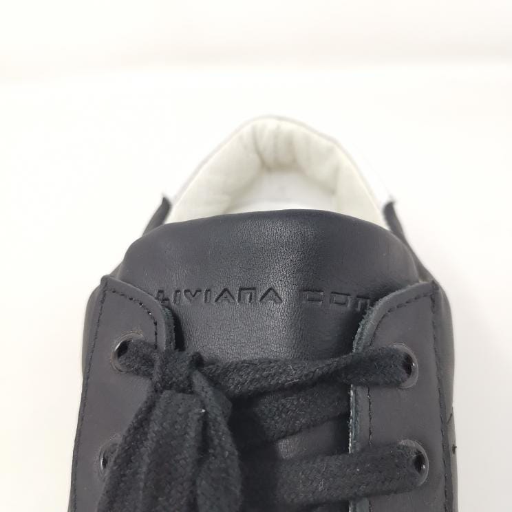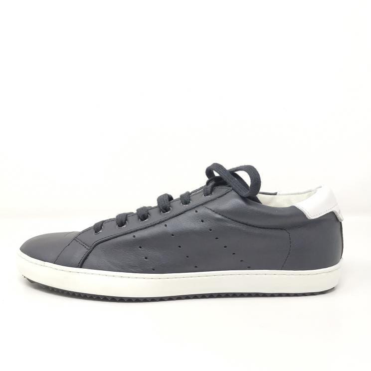 Black leather sneaker with 2 cm high white rubber sole. The leather insole measures 25.5 cm so it fits better as a 39.5/40 EU. Very soft leather, excellent condition.