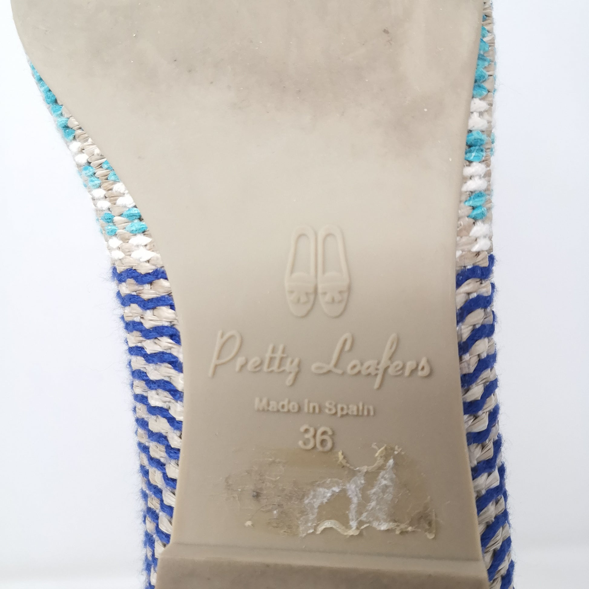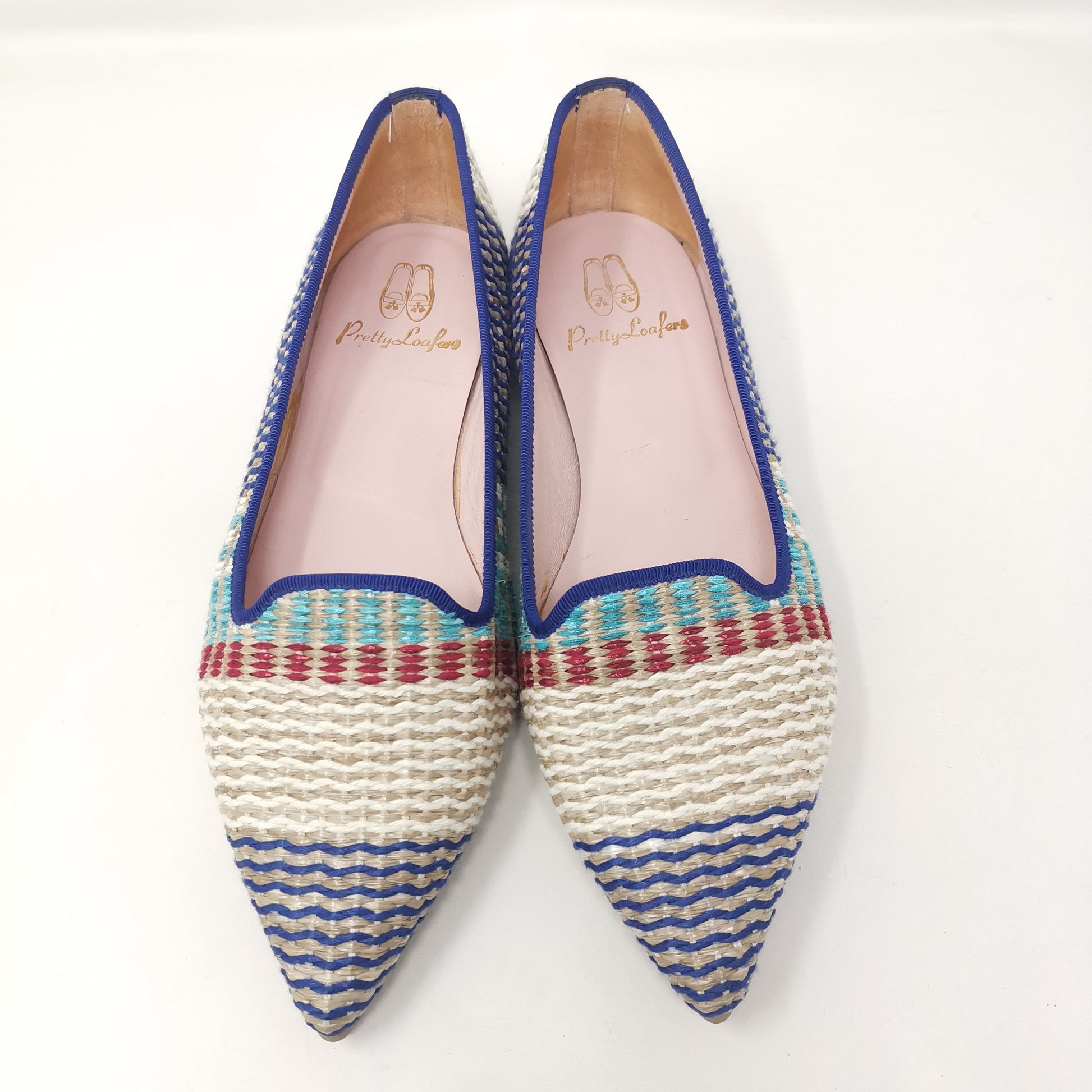 Multicolor slippers in leather covered in rope, internal sole in leather and external rubber. Heel height 0.7cm, the insole measures 23.5 cm. Some yellow halos inside, very good condition. Size 36 EU.