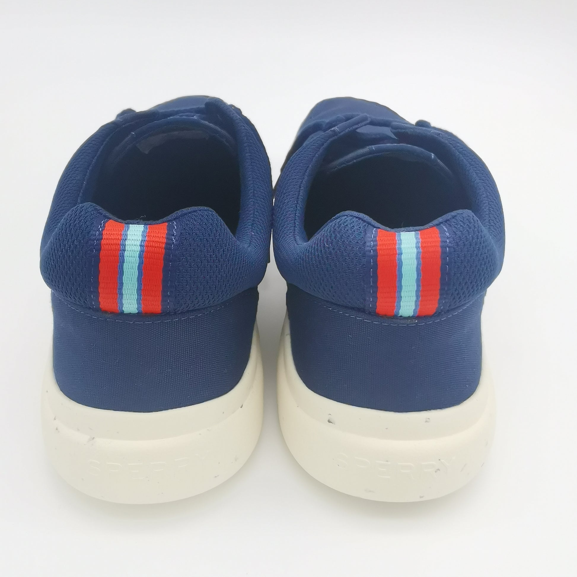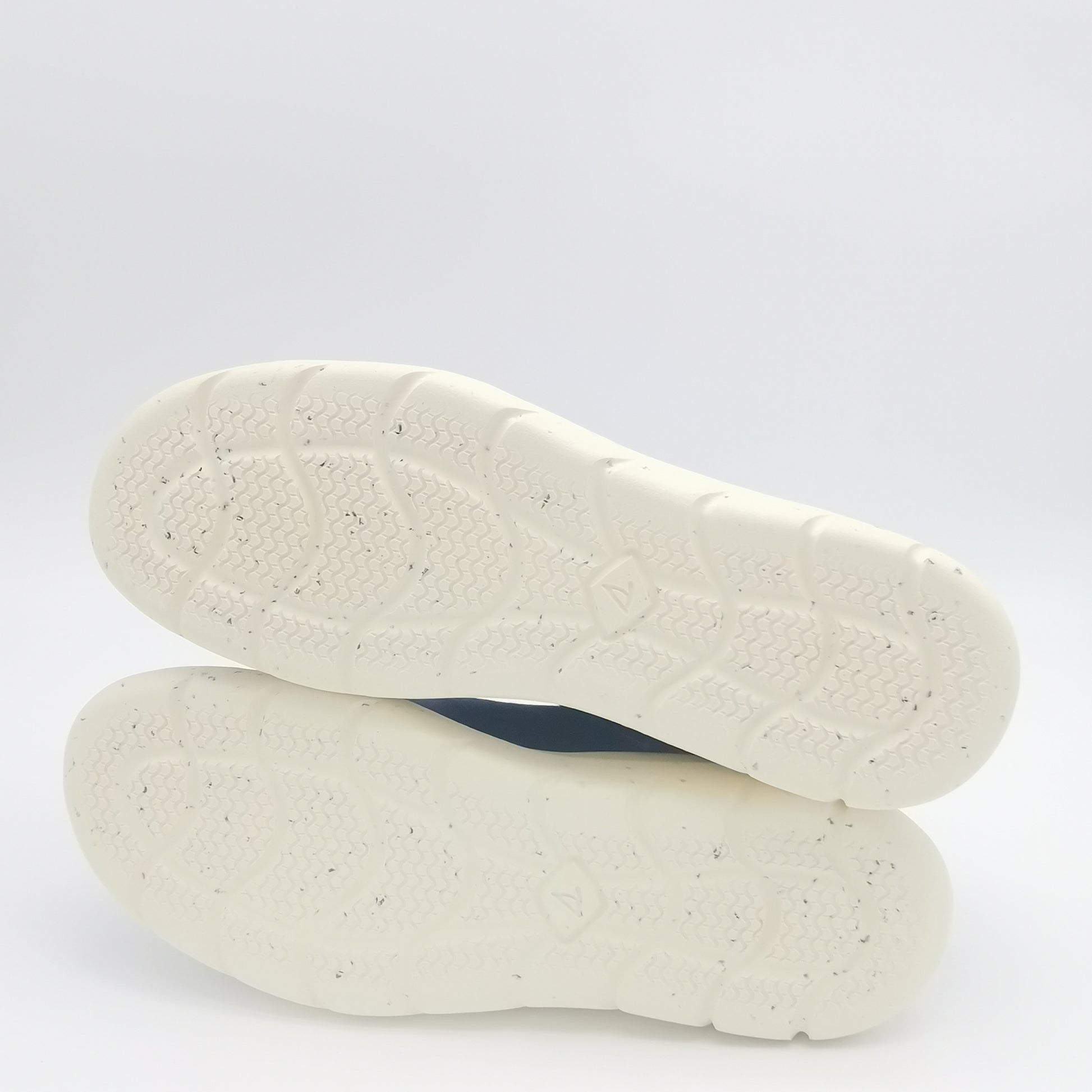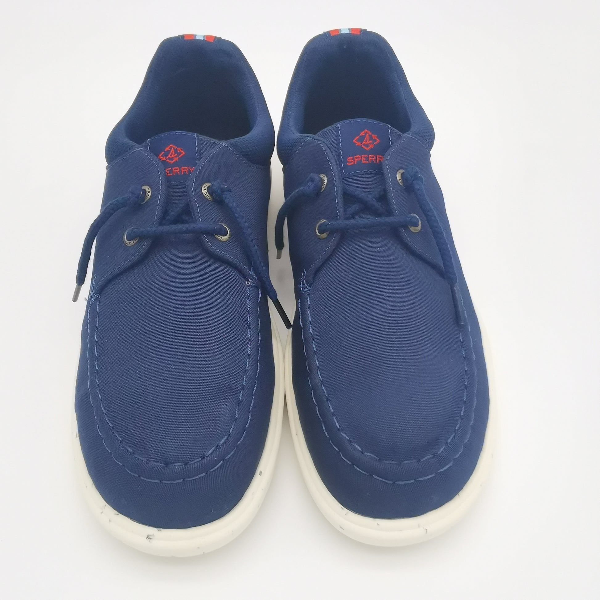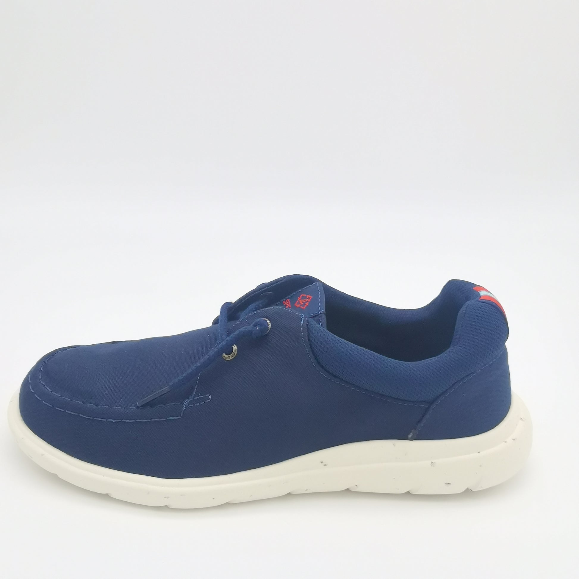 Sailing shoes in blue canvas, white rubber sole with blue dots 3 cm high at the heel. Very light and never used, complete with box. The insole measures approximately 28 cm. Size 43 EU.