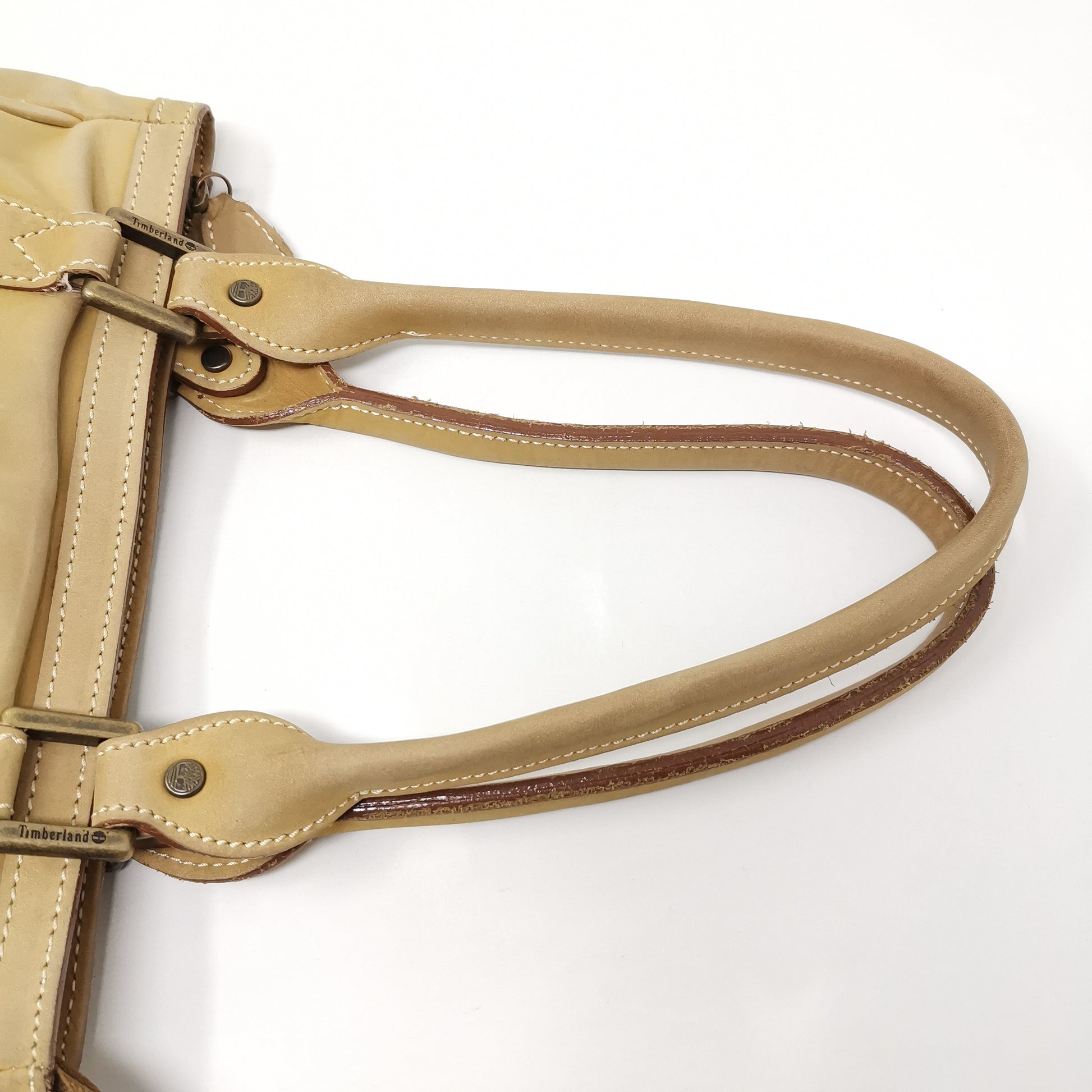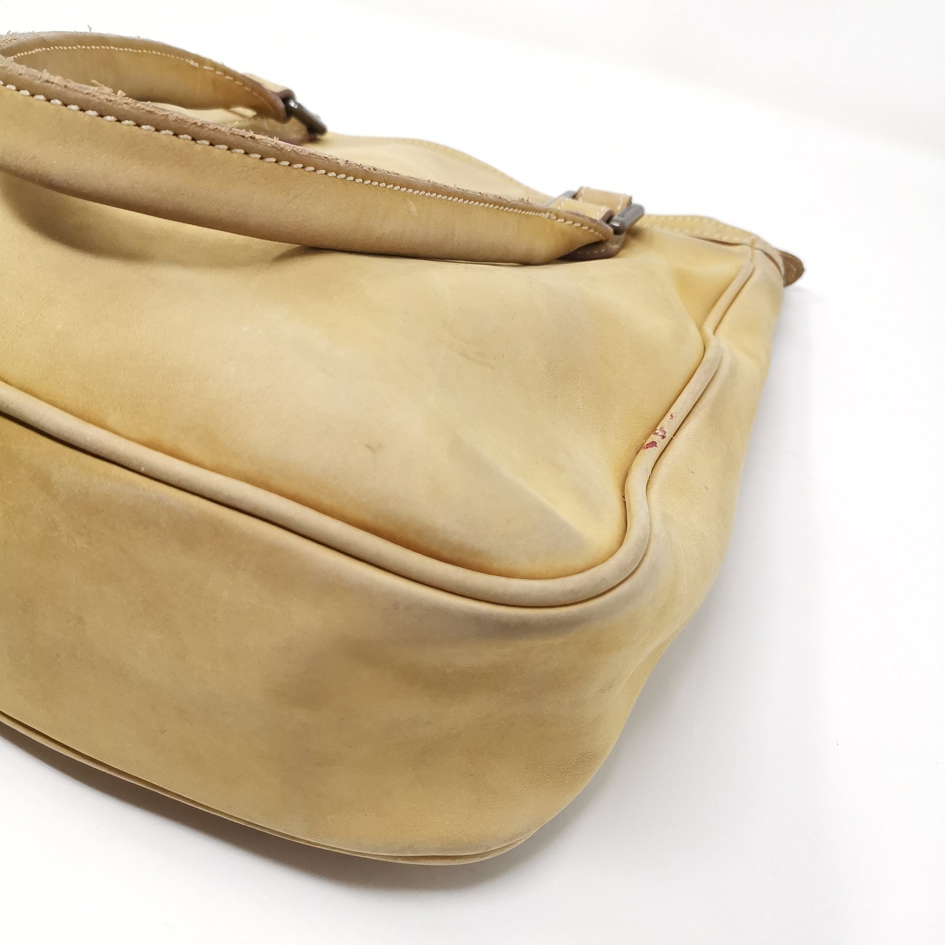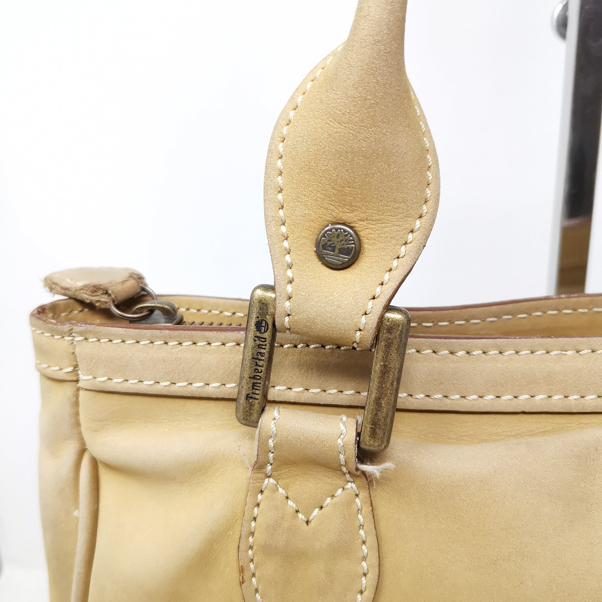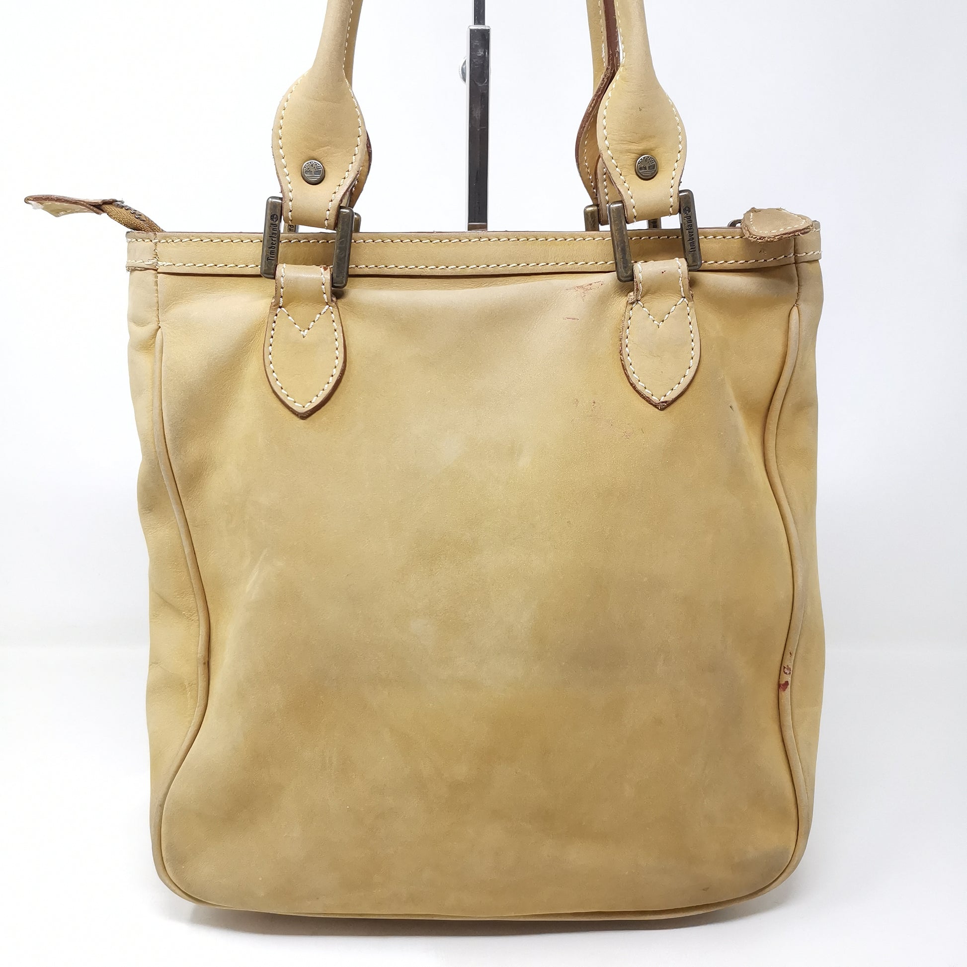 Beige/camel suede bag with double handles. Zip opening and fabric interior with pockets.